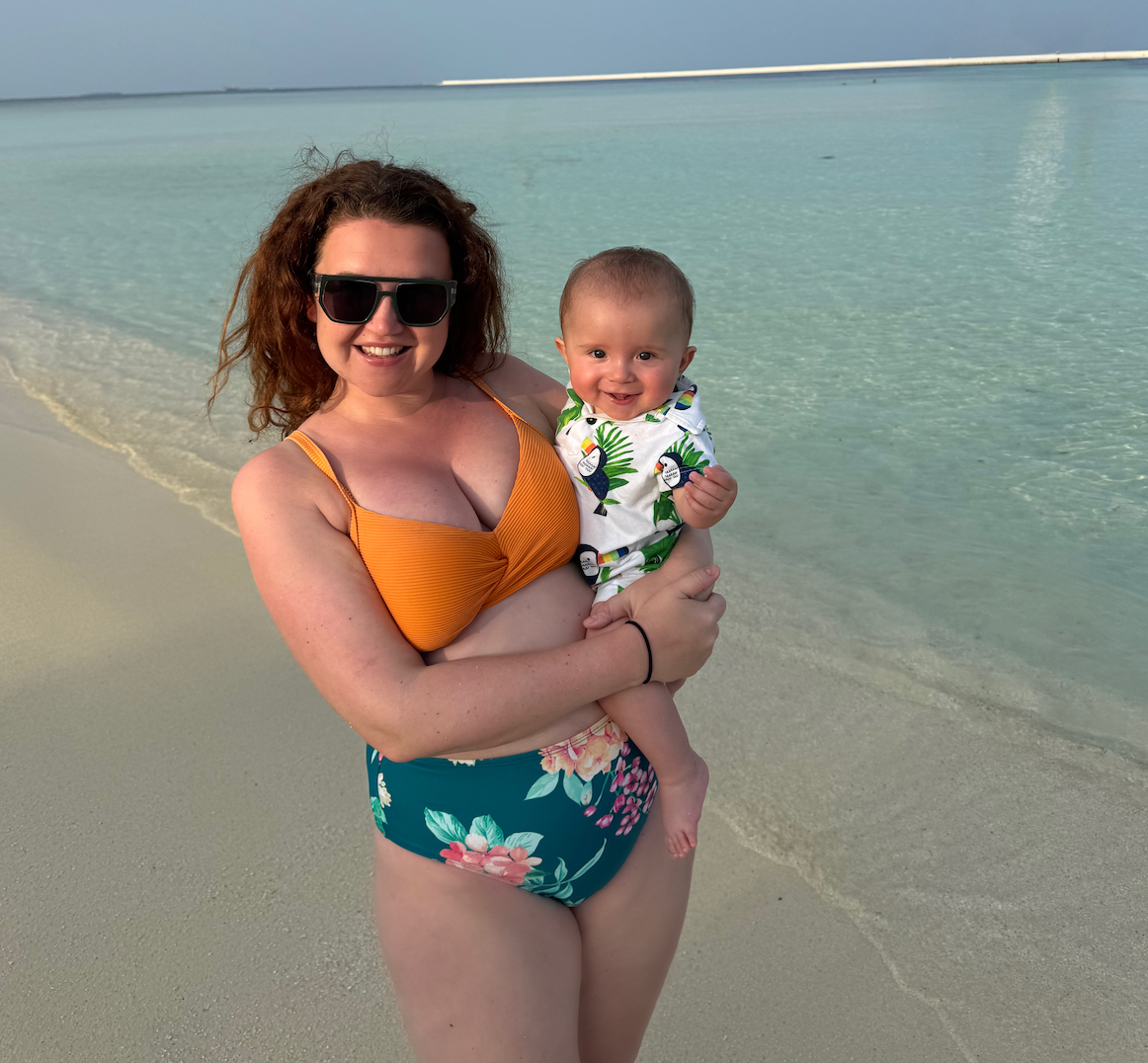 The author and her family on a beach walk in Andalucia, Spain